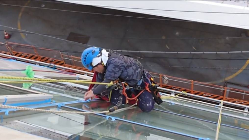東京都港区にて無足場工法であるロープアクセスによる斜壁防水工事を行いました。