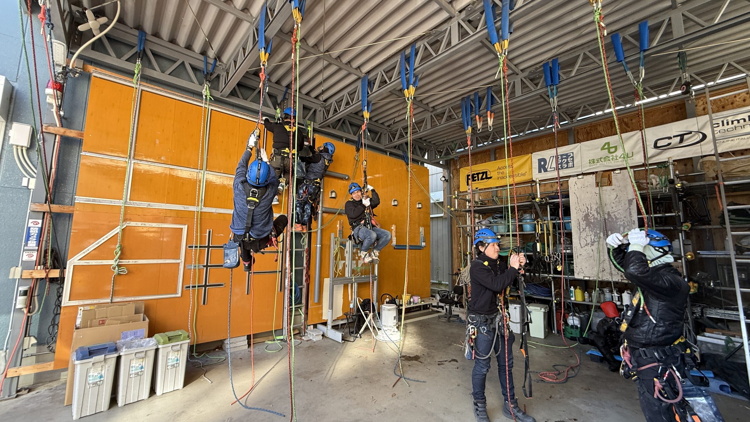 弊社がロープアクセス技術のフランチャイズ展開をしている「ロープdemo工事 RITA」の定期トレーニングを実施しました。
