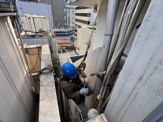 東京都豊島区にてロープアクセス工法を用いて建物外壁の劣化状況および不具合の有無を詳細に調査しました。 足場を設置せずに高所まで直接確認することで、タイルの浮き・ひび割れ、シーリングの劣化、防水層の状態などを的確に把握し、補修・改修・大規模修繕の要否や、適切な工事範囲を判断します。 ロープアクセスによる外壁調査は、コストや工期、周辺環境への影響を抑えつつ、建物の現状を正確に把握できる調査方法です。