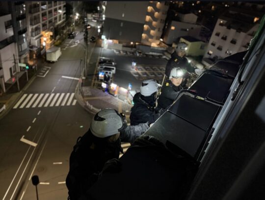 東京都渋谷区にて無足場工法であるロープアクセスによる漏水工事を行いました。