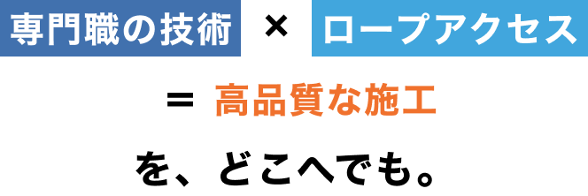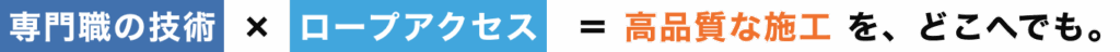 ロープで作業する=簡易的、ではありません。 私たちは、防水・塗装・タイル補修などの技能士資格持つ職人が、ロープアクセス技術を駆使して、狭所や高所でも高品質な施工を提供します。