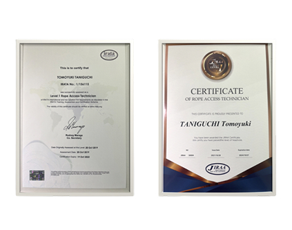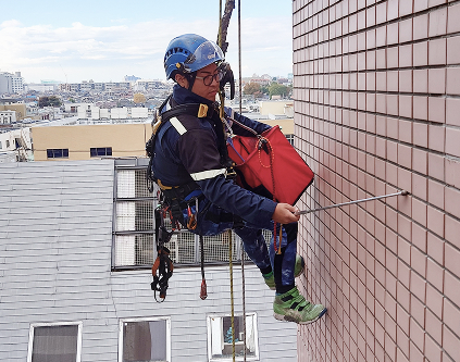 ロープアクセスはISO規格(国際基準)に準じており、日本では山岳レスキュー隊が人命救助で使用する非常に安全な技術で、事故歴は1度もありません。
